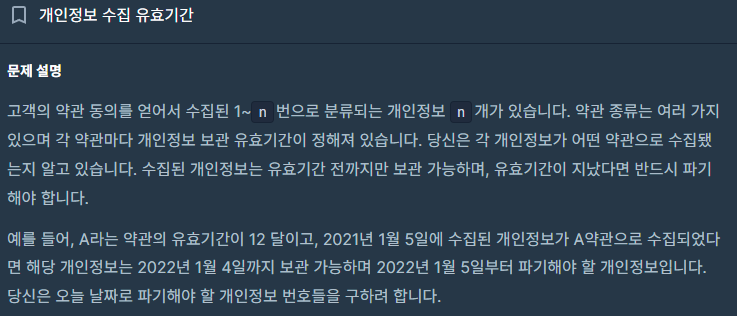 | Programmers 개인정보 수집 유효기간 with Kotlin (0) | 2023.12.27 |