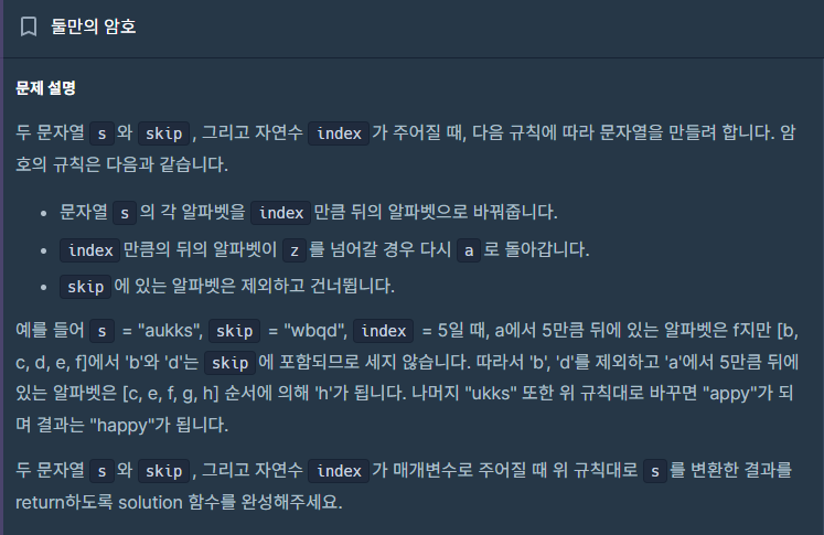 | Programmers 둘만의 암호 with Kotlin (1) | 2023.12.19 |