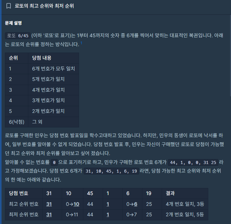 | Programmers 로또의 최고 순위와 최저 순위 with Kotlin (0) | 2023.12.11 |
