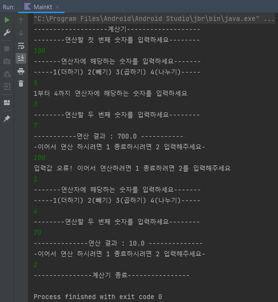 else println("1부터 4까지 연산자에 해당하는 숫자를 입력하세요")
