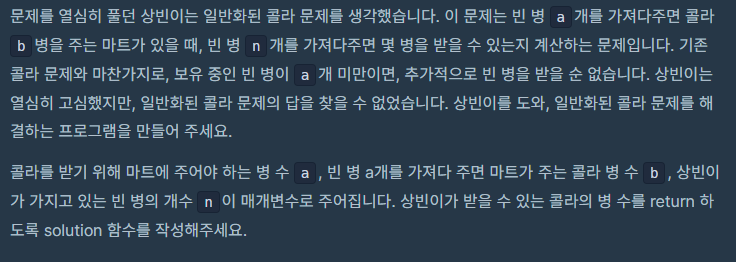 while 문을 통해서 빈 병 개수가 최소요구 개수보다 클 때만 코드가 진행되도록 만들었다.
